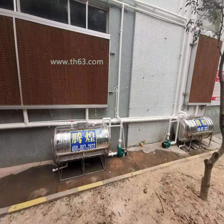 冷風(fēng)機廠家騰煌濕簾安裝使用是由兩部分組成:騰煌濕簾片和金屬邊框,通過金屬外框?qū)⑵淅卫蔚姆€(wěn)固在安裝窗戶口。騰煌濕簾降溫系統(tǒng)在其核心——濕簾紙內(nèi)完成的。在波紋狀的纖維紙表面有層薄的水膜,當(dāng)室外的干熱空氣被風(fēng)機抽吸穿過濕簾紙時,水膜中的水會吸收空氣中的熱量后蒸發(fā),帶走大量潛熱,使經(jīng)過濕簾紙的空氣溫度降低,經(jīng)過這樣處理后的涼爽濕潤空氣進入室內(nèi)。與室內(nèi)的熱空氣混合后,通過風(fēng)機排出室外。