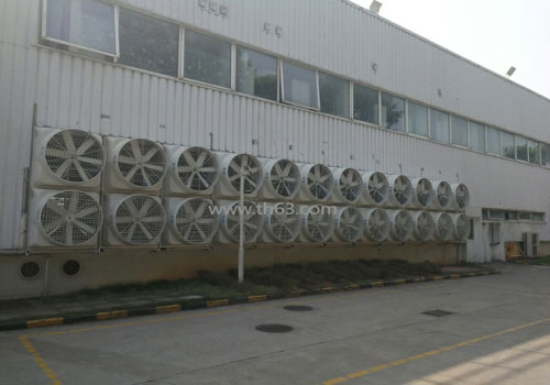 在廠房窗戶的一端安裝上降溫水簾片/濕簾墻降溫設(shè)備,與之相對(duì)的一端安裝負(fù)壓風(fēng)機(jī),應(yīng)用負(fù)壓風(fēng)機(jī)將廠房?jī)?nèi)的熱氣抽出,在通風(fēng)散熱除塵的同時(shí),室內(nèi)外造成氣壓差,促使外界的空氣經(jīng)由降溫水簾片/濕簾墻所形成的水膜蒸發(fā)吸熱瞬間降溫,涼爽空氣便會(huì)源源不斷的吹入廠房?jī)?nèi)部,進(jìn)而營(yíng)造一個(gè)舒適、涼爽、清新的工作環(huán)境。不管是在多么炎熱的夏天,降溫濕簾+負(fù)壓風(fēng)機(jī)通風(fēng)降溫系統(tǒng)可使用您的廠房溫度始終保持在24℃~29℃之間,使空氣進(jìn)行室內(nèi)外循環(huán),增加空氣含氧量,可在極大程度上減少職業(yè)病的發(fā)生,進(jìn)而提高工作效率。