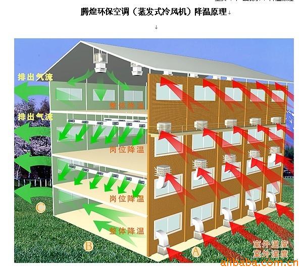 車間冷風(fēng)機(jī) 通風(fēng)換氣,根據(jù)“水蒸發(fā)吸收熱量,蒸發(fā)面積影響蒸發(fā)效率”將室外的鮮風(fēng)通過過濾輸送到室內(nèi),從而達(dá)到通風(fēng)降溫、換氣。