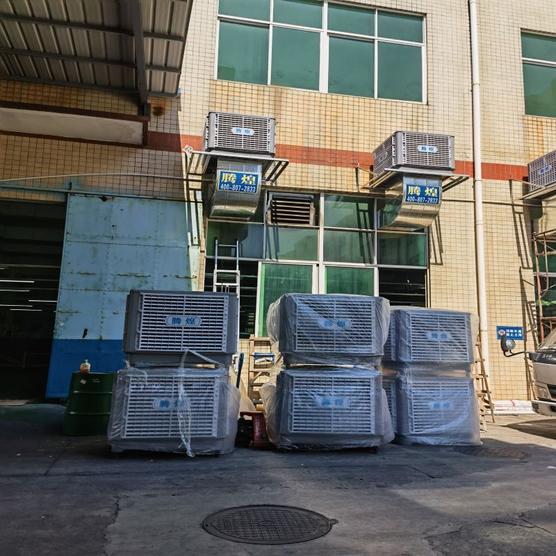 工廠車(chē)間降溫解決方案騰煌工業(yè)環(huán)保空調(diào)通過(guò)水蒸發(fā)吸熱的原理,內(nèi)置風(fēng)機(jī)將室外的熱空氣經(jīng)過(guò)過(guò)濾后,經(jīng)過(guò)濕潤(rùn)的蒸發(fā)濕簾,空氣中的熱量被濕簾吸收蒸發(fā)后迅速降溫4-10℃,源源不斷是送到室內(nèi),并將室內(nèi)的渾濁悶熱空氣派往室外,達(dá)到通風(fēng)、降溫的效果,是目前較為理想的大型鋼結(jié)構(gòu)廠房降溫方式。