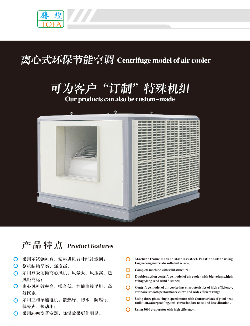 2、采用雙吸前傾離心風(fēng)機(jī),風(fēng)量大,風(fēng)壓高,送風(fēng)距離遠(yuǎn);